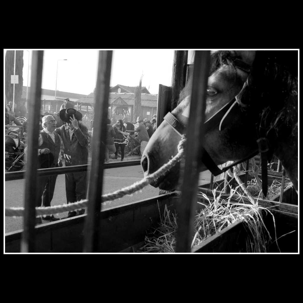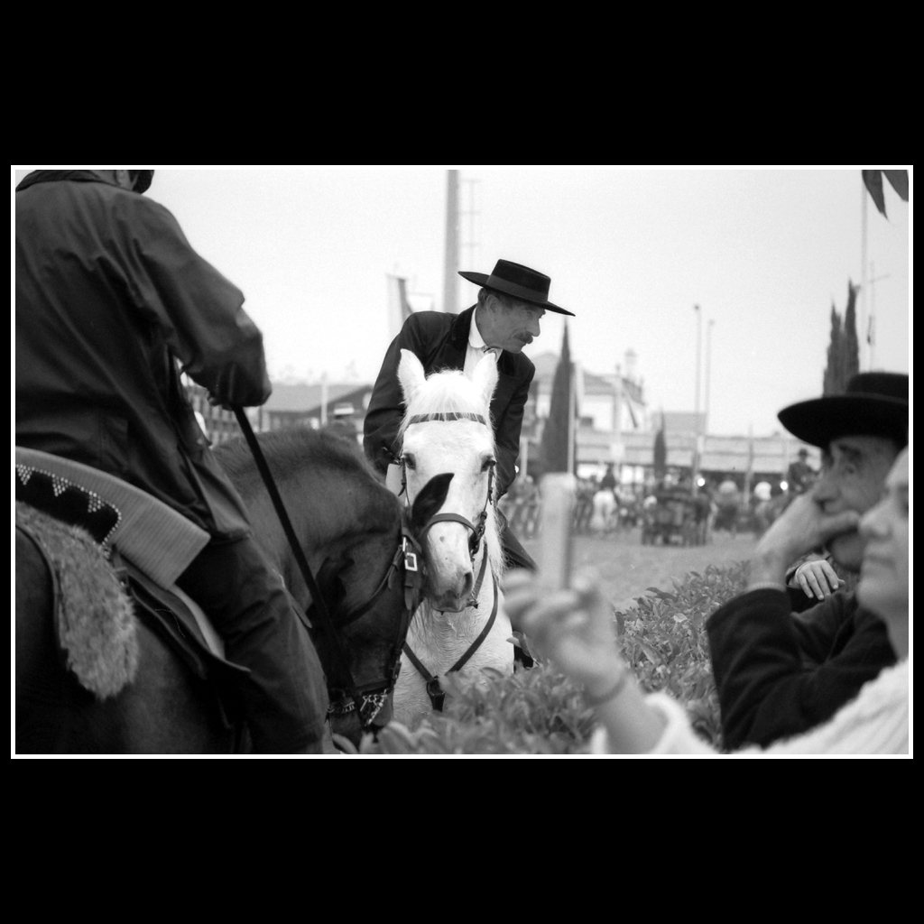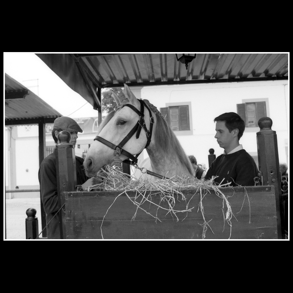 “Feira da Golegã” é uma série de 18 provas fotográficas analógicas, de gelatina e sais de prata, ampliadas manualmente e tradicionalmente a partir de películas a preto-e-branco.