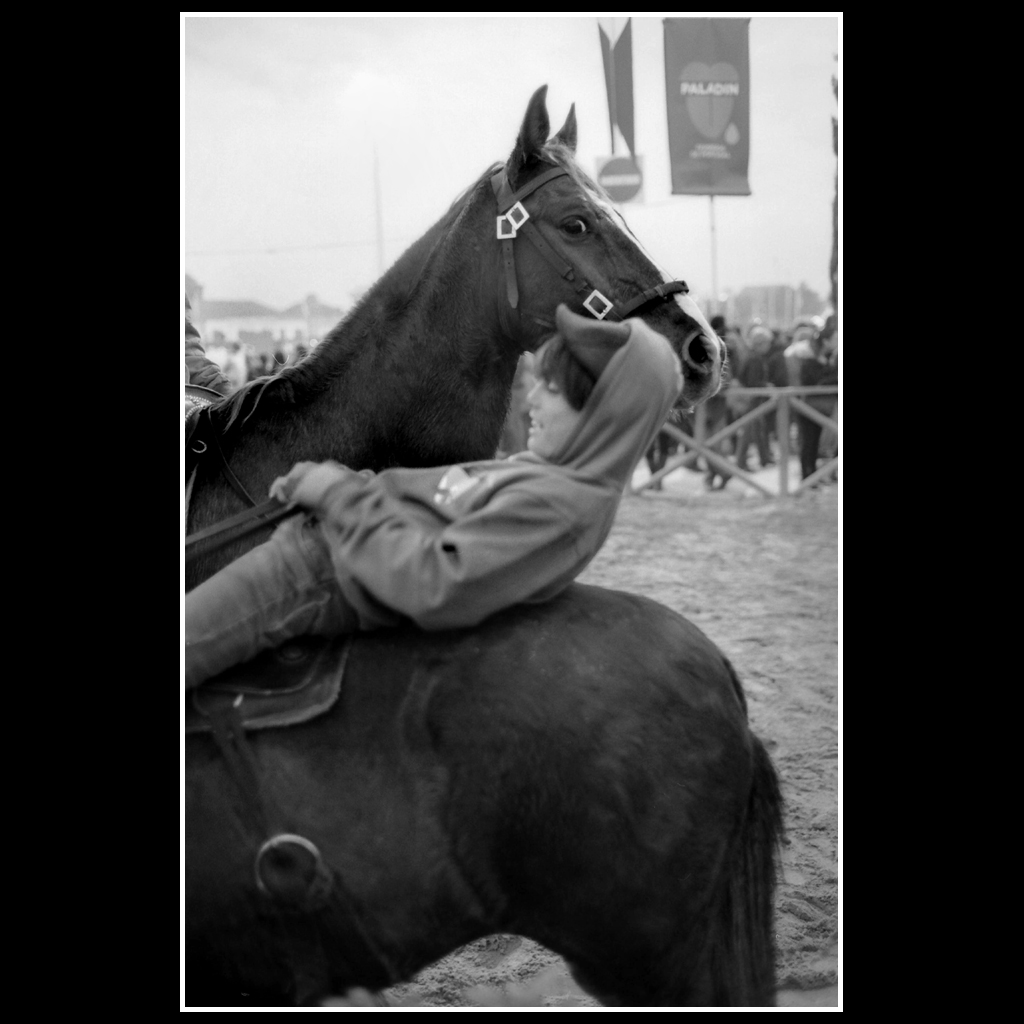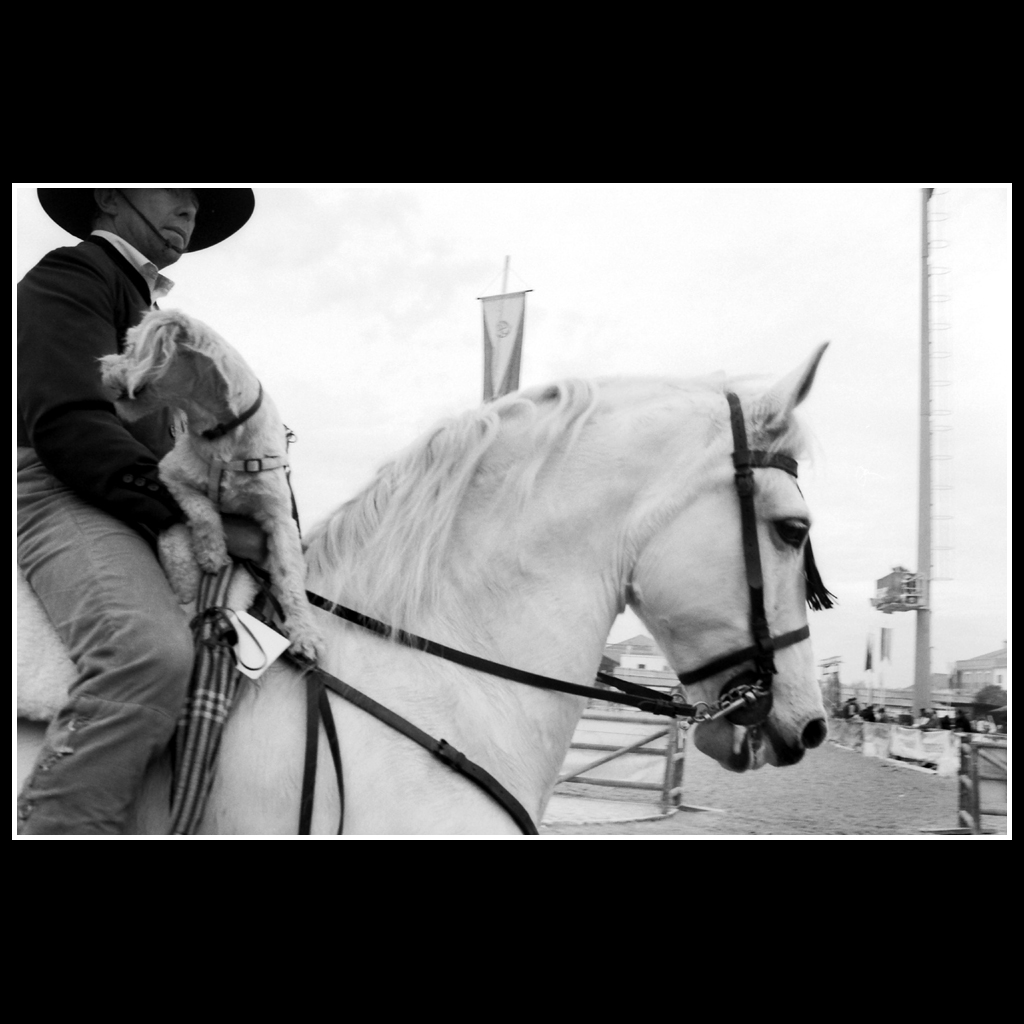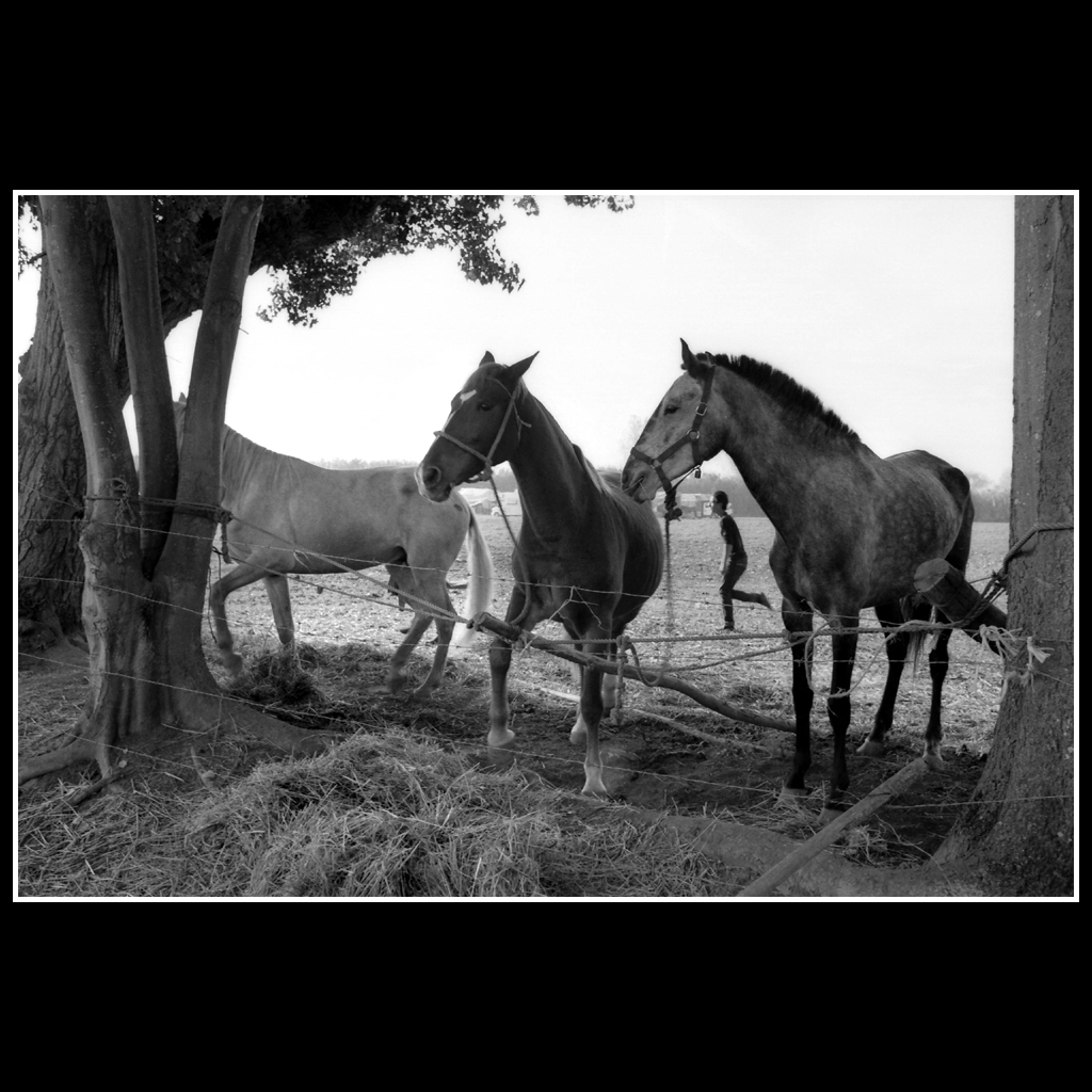 “Feira da Golegã” é uma série de 18 provas fotográficas analógicas, de gelatina e sais de prata, ampliadas manualmente e tradicionalmente a partir de películas a preto-e-branco.